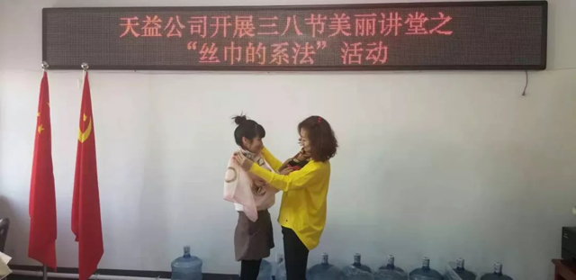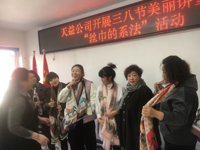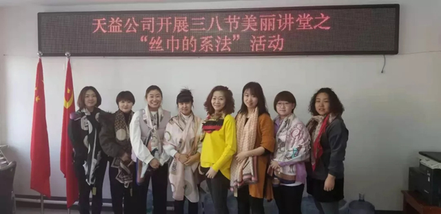 3月8日上午,天益公司舉辦了慶祝“三八節(jié),絲巾造型歡樂賽”活動(dòng),向偉大而無私奉獻(xiàn)的女性同志們致以節(jié)日的問候。
