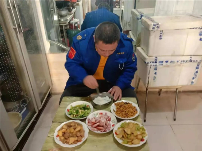 職工們發(fā)現(xiàn),車隊(duì)的職工食堂今天的伙食比往常額外增加了“硬菜”,有豬頭肉,香腸、熘肉段,醬雞脖、青椒炒雞蛋等菜品,職工們第一時間吃上醬香的豬頭肉,特別高興。
