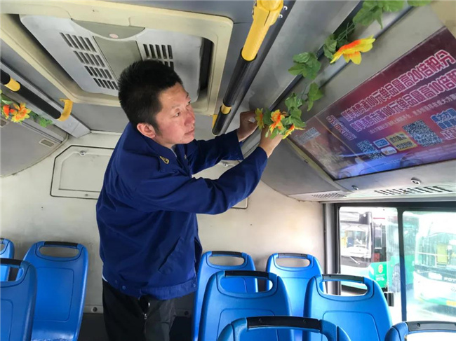 國慶節(jié)臨近,客運集團所屬各車隊積極裝扮公交車廂,為市民乘客營造喜慶、祥和的節(jié)日氛圍。