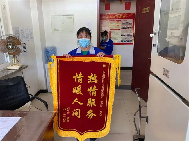 第二天,乘客劉女士專程來到260車隊(duì),將一面寫有“熱情服務(wù) 情暖人間”字樣的錦旗交到了車隊(duì)并說道:“非常感謝車隊(duì)培養(yǎng)了這么優(yōu)秀的駕駛員,因節(jié)日期間急著補(bǔ)一批貨,又趕上家里缺人手,我才一個人前往五愛市場。本來還擔(dān)心駕駛員不會讓我上車,或者嫌棄我耽誤時間,沒想到遇到了兩位熱心腸的駕駛員,他們耐心細(xì)致的幫助我解決了困難,讓我倍感溫暖。為表感激之情,我特意趕制了一面錦旗了表寸心,謝謝你們!”