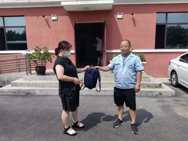 當天下午,一名乘客來到車隊尋找背包并進行詢問,車隊副隊長張春亮說:“背包撿到了,一直在車隊代為保管,請您放心。”核實無誤后,車隊副隊長把背包交還給失主,同時囑咐乘客以后一定要好好保管自己的隨身物品。這時,正好趕上駕駛員魏軍跑圈回來,該名乘客當面對魏軍表達了感謝之意。魏軍表示不用客氣,這是自己應該做的,不能辜負乘客對我們駕駛員的信任。