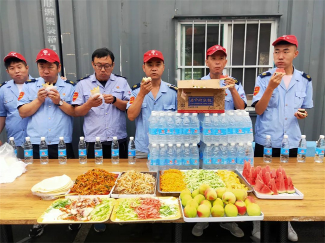 為了保障駕駛員在高溫天氣下,以飽滿的工作狀態(tài)更好的為廣大乘客服好務,車隊密切關注駕駛員的精神狀態(tài)和身體健康情況,做好駕駛員生理心理健康監(jiān)測工作,加強對駕駛員心理健康的培訓和疏導工作。同時,為了調(diào)動廣大駕駛員工作積極性,以更加飽滿的精神狀態(tài)為乘客提供文明規(guī)范的服務,車隊從關心職工出發(fā),持續(xù)為職工“送清涼 ”、為職工提供礦泉水,西瓜、雪糕,鮮桃做好防暑降溫工作。值得一提的是,三伏第一天,211.222車隊還很應景的為職工提供了“烙餅攤雞蛋”和豬頭肉、香腸、魚香肉絲、豆芽炒粉,卷菜等菜品,提高餐品質(zhì)量提升職工用餐滿意度。