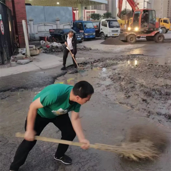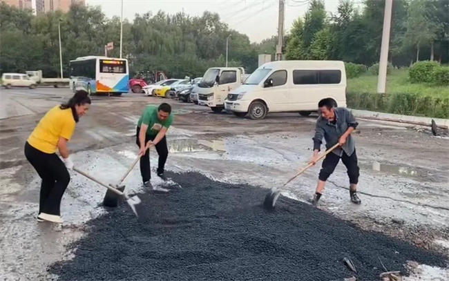 為盡快解決路面問題,消除安全隱患,黃河公司在資金極度緊缺的情況下,本著辦法總比困難多的積極態(tài)度,通過聯(lián)系市政施工隊以進場的方式來修復(fù)破損路面。