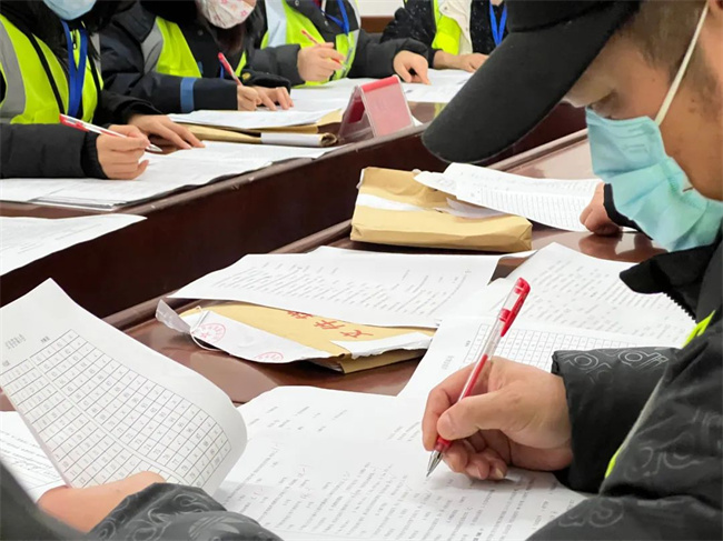 駕駛員筆答考試結(jié)束后,工作人員認(rèn)真開(kāi)展閱卷工作。