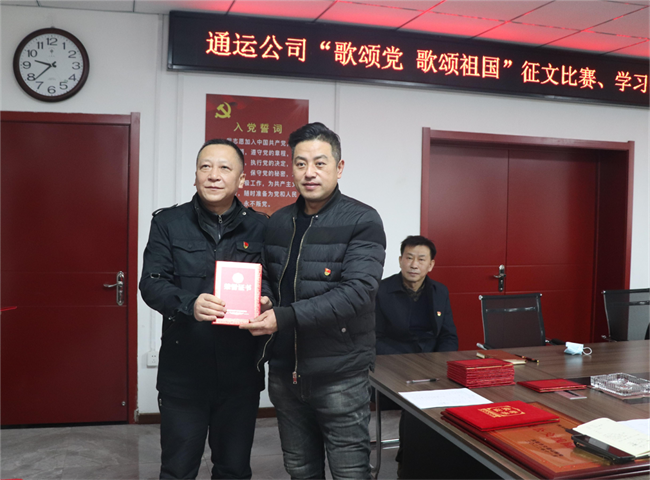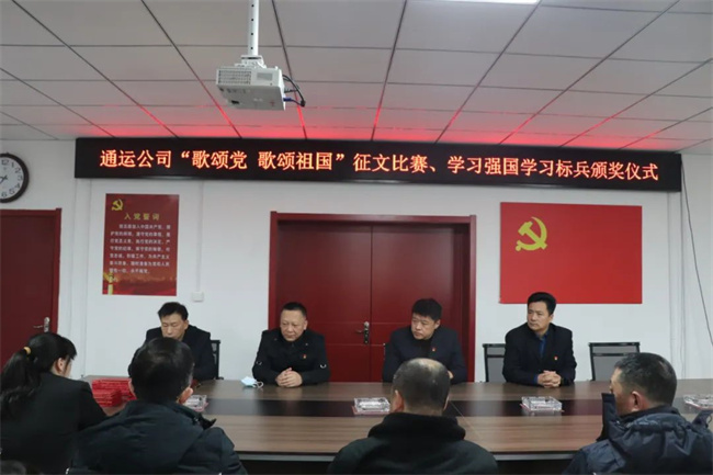 1月12日上午,通運公司在一樓會議室召開“歌頌黨 歌頌祖國”征文比賽、學(xué)習(xí)強(qiáng)國學(xué)習(xí)標(biāo)兵頒獎儀式,公司領(lǐng)導(dǎo)班子及各支部書記、獲獎職工代表參加,共30余人。