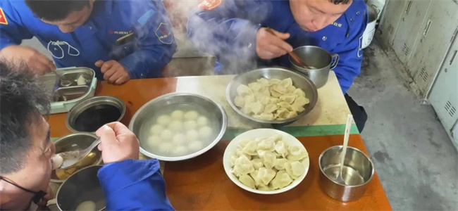 車隊為堅守崗位的駕駛員煮了元宵、餃子,同時送上節(jié)日祝福?!白D憬衲晔杖朐黾印?、“祝你今年身體健康”,“祝你今年大展宏圖”......在聲聲祝福中,駕駛員們開開心心吃著元宵、餃子。大家甜在嘴里,暖在心里,臉上露出幸福的笑容。