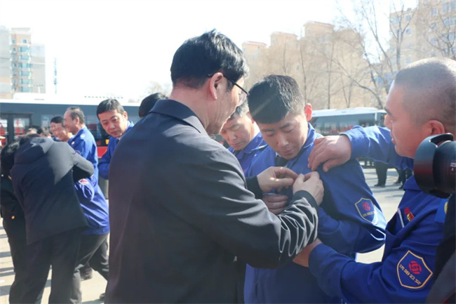 為258路車隊授予“學雷鋒示范線路”牌匾,并為駕駛員代表佩戴“為人民服務”胸牌