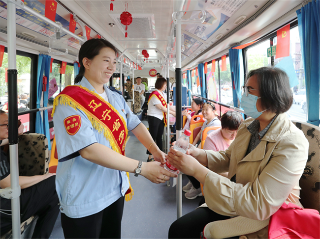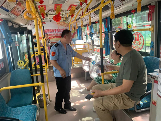 期間學(xué)生家長在公交車上休息,王樹祥為大家準(zhǔn)備了水、急救物資、乘涼用品等,家長們對車隊(duì)提供便利條件和溫馨的舉動(dòng)表示感謝。