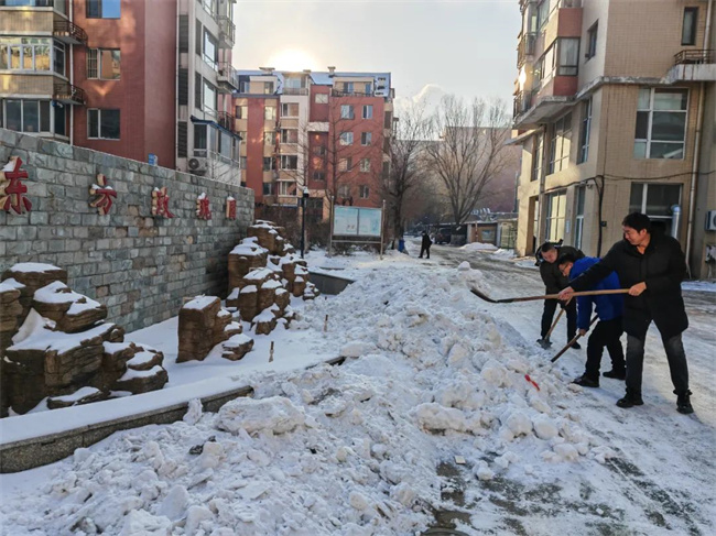 在志愿者們的帶動下,許多普通居民和沿街商戶也陸續(xù)加入到清除冰雪的隊伍之中,大家齊心協(xié)力清掃出一條條“暖心平安路”,確保了市民的安全出行,用“共掃全城雪”的實際行動,美化家園、扮靚城市、溫暖人心。