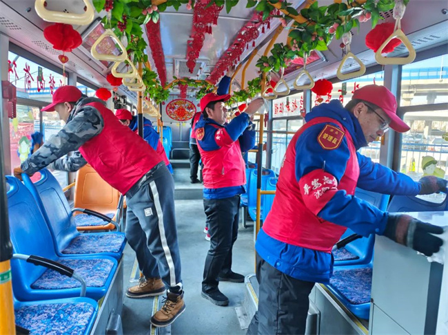 近日,211.222路黨支部全體黨員干部職工在龍之夢公交樞紐站開展清潔運(yùn)營車輛、場區(qū)候車?yán)燃罢緞?wù)室活動,打造年味公交。
