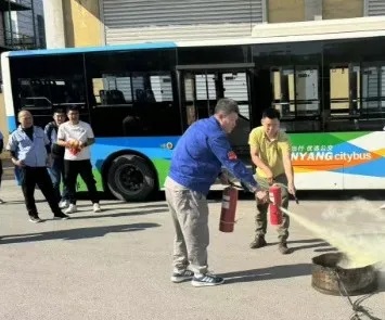 培訓(xùn)之后,在場人員來到公司院內(nèi)進(jìn)行實(shí)地綜合演練。針對公交車輛突發(fā)火災(zāi)、乘客攜帶易燃易爆物品乘車等情況,駕駛員如何緊急停車、疏散乘客、使用滅火器進(jìn)行撲救、處置危險(xiǎn)品等方面進(jìn)行了演練。