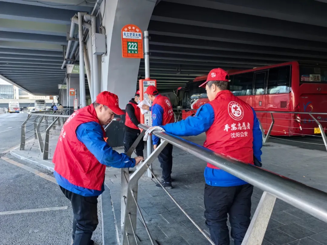 此外,志愿者們分別前往沈陽北站公交樞紐站、龍之夢公交樞紐站、長客西站公交樞紐站進行清掃除塵志愿服務活動,讓每一位到站乘客感到整潔與溫馨。志愿者們還將隨意停放的共享單車、自行車、電動車擺放整齊。