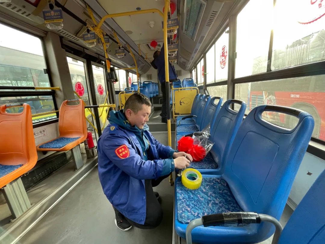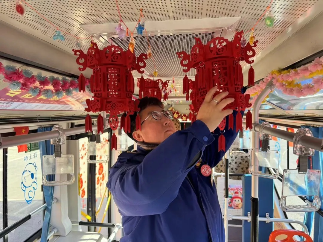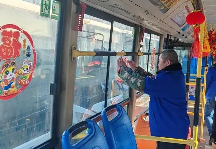 據(jù)了解,元旦前夕,沈陽客運集團按照全市“我是雷鋒”——沈陽市窗口行業(yè)文明誠信服務(wù)寵客(qiě)行動工作安排,落實全市“雙節(jié)”節(jié)日氛圍布置工作要求,積極開展“布置車廂,扮靚沈陽”行動,各車隊利用行車間歇和休息時間裝扮車輛,懸掛新年拉花、紅燈籠,張貼新年窗花及融入“蛇年”元素的貼紙等。目前,已有1188臺途經(jīng)主要街路、景區(qū)、商業(yè)街區(qū)的公交車輛完成了裝飾,車內(nèi)年味十足,客運集團計劃在春節(jié)之前完成全部運營車輛的裝飾布置工作。