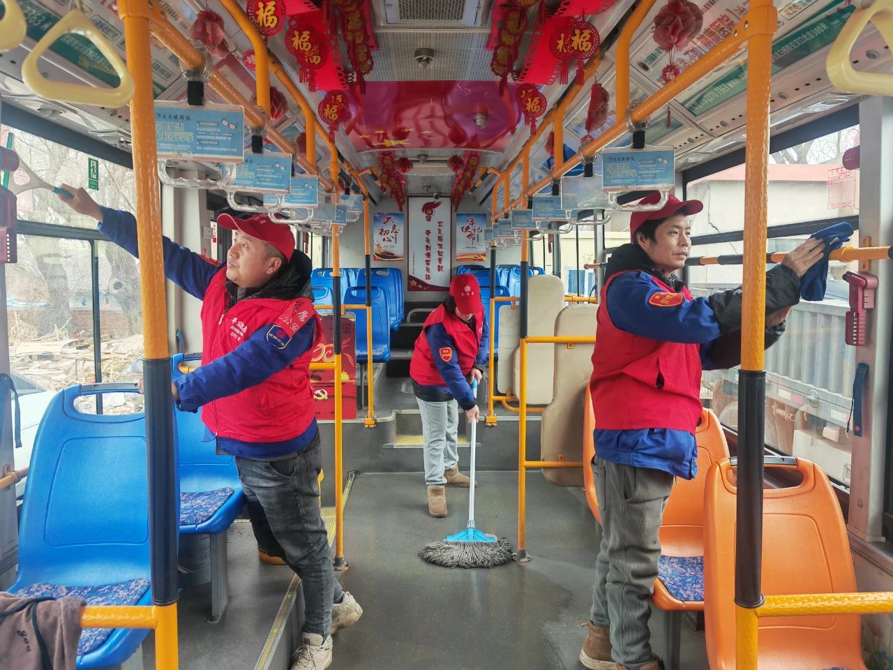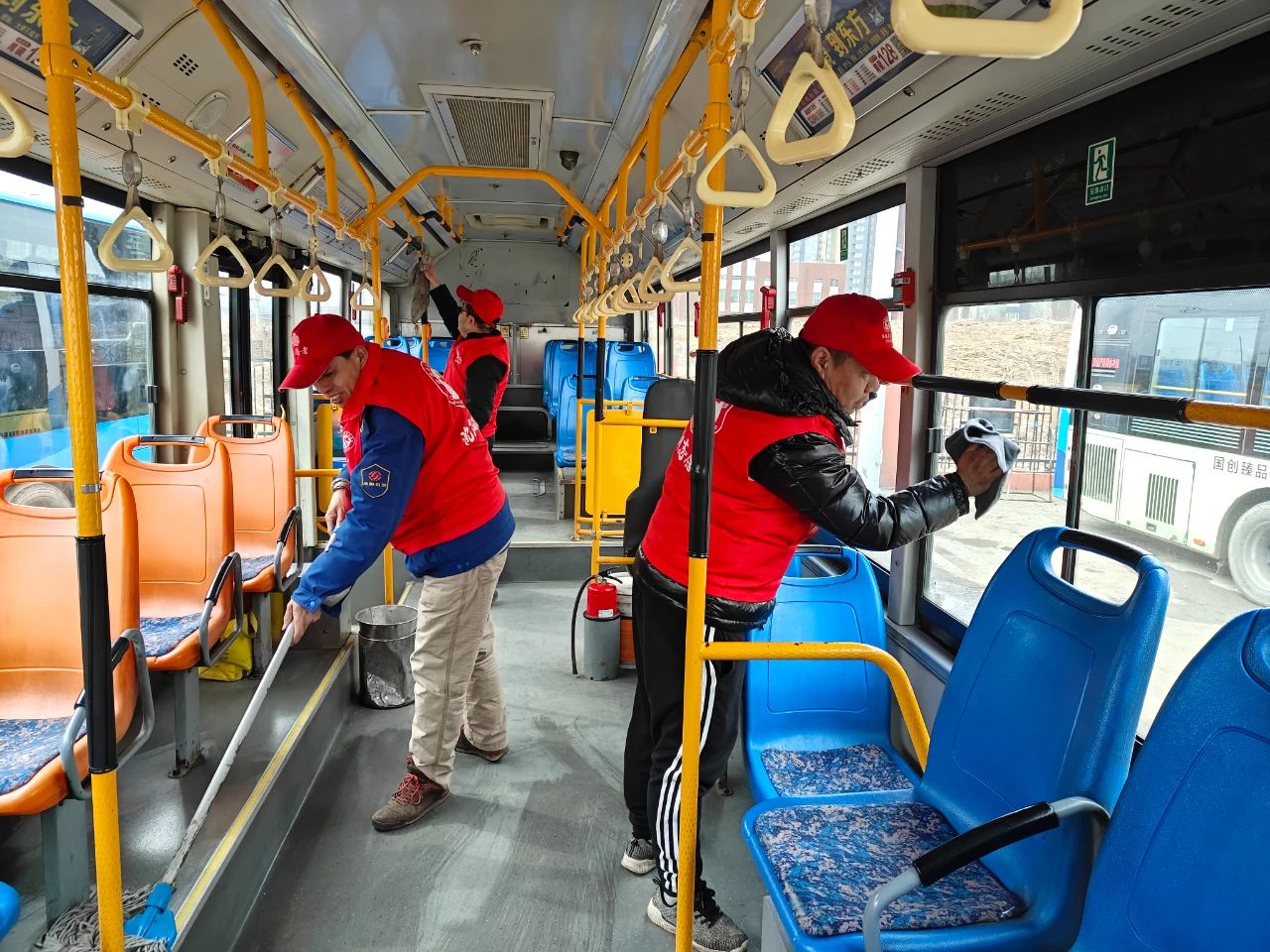 早春的寒風(fēng)依舊冷冽,活動中,志愿者們不畏寒冷,身穿帶有志愿服務(wù)標(biāo)識的紅色馬甲,手拿清潔工具,對公交車輛、場站、候車?yán)鹊葓鏊M(jìn)行清掃,為乘客提供干凈舒適的出行環(huán)境。