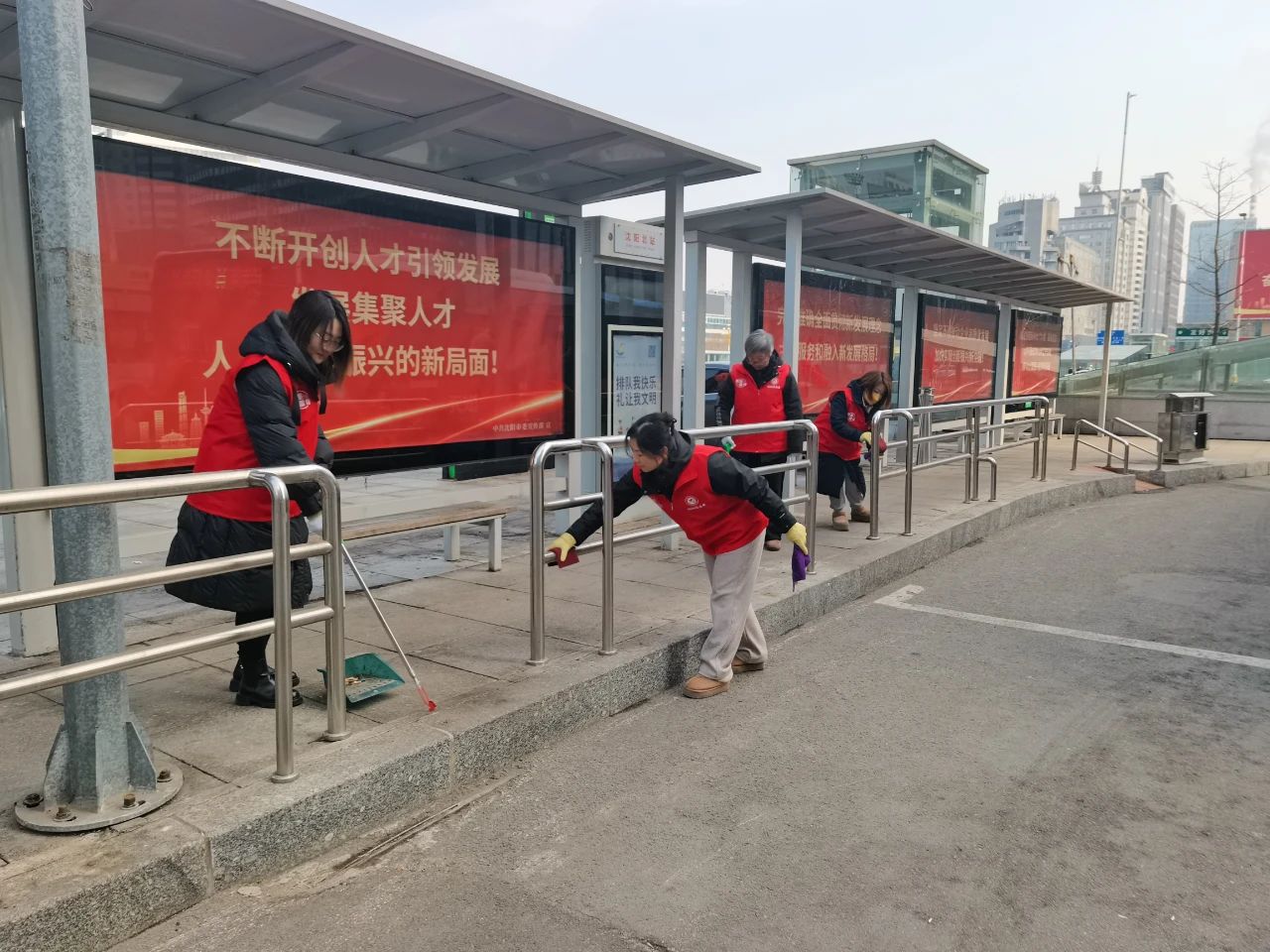 早春時節(jié)乍暖還寒,活動中,各支部的志愿者們不畏寒冷,身穿志愿服務(wù)字樣的紅馬甲,手拿清潔工具,對場區(qū)、辦公區(qū)的殘雪、垃圾以及候車?yán)鹊淖?、欄桿、站牌上的小招貼小廣告進(jìn)行細(xì)致清理,不放過任何一個角落。在志愿者們的共同努力下,大家的工作環(huán)境更美了,周邊公共區(qū)域的環(huán)境更靚了。