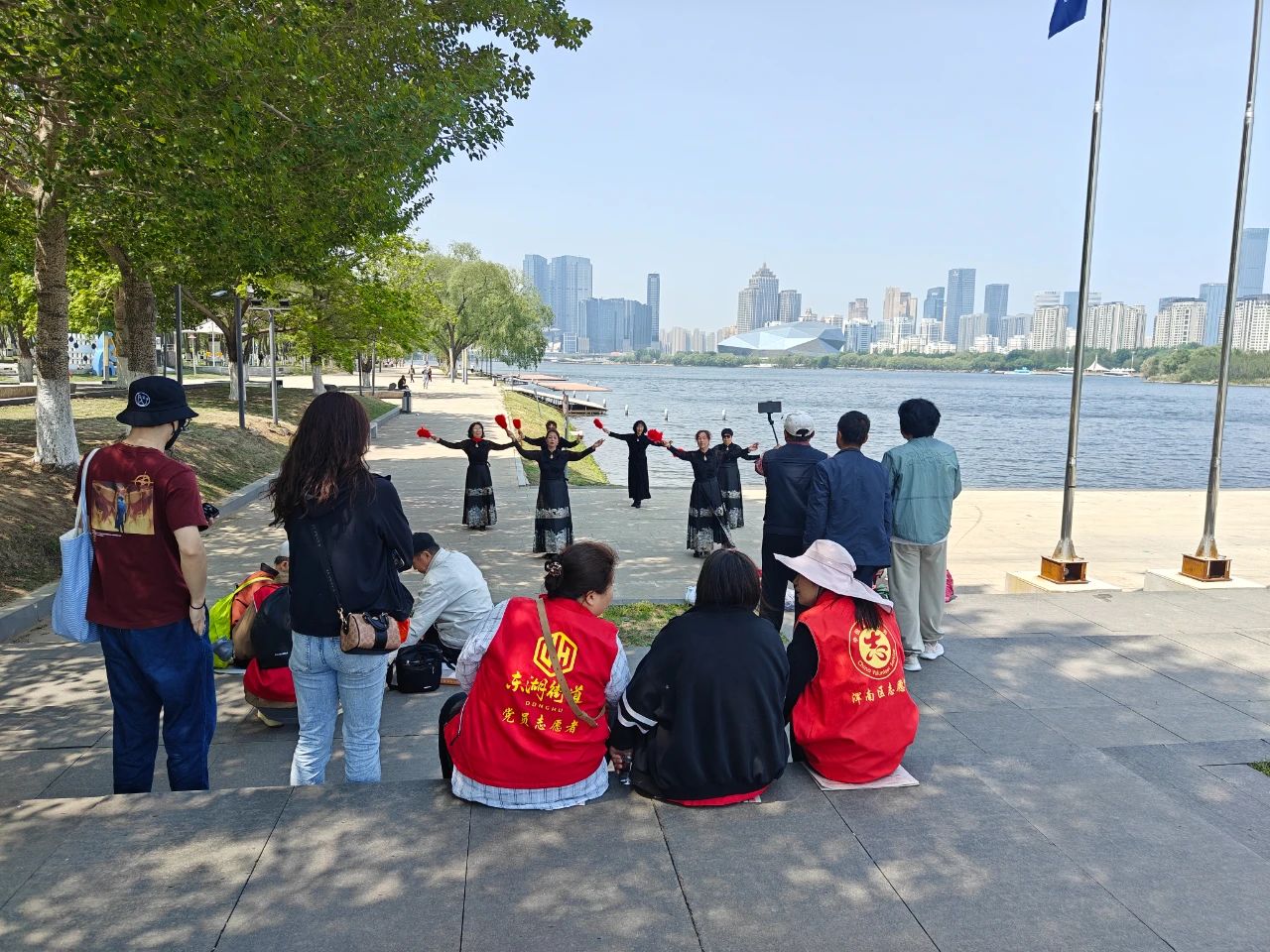 當(dāng)天清晨9點(diǎn),載滿歡聲笑語的公交車準(zhǔn)時出發(fā)。在奧林匹克公園河畔,老人們漫步林蔭道,賞花觀景、拍照留念,社區(qū)老年模特隊(duì)身著馬面裙,手拿紅色折扇在湖邊翩翩起舞驚艷全場,翩躚身影與粼粼波光相映成趣。返程途中,車廂化身為"流動文化站",黨員志愿者帶領(lǐng)老人們開展紅歌聯(lián)唱,《我和我的祖國》《沒有共產(chǎn)黨就沒有新中國》的旋律此起彼伏,溫情涌動間拉近了黨群距離。