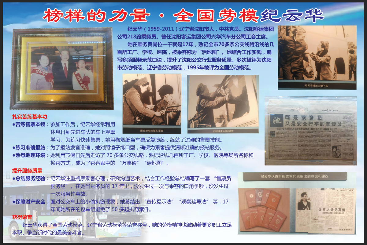 車隊精心打造全國勞模紀云華事跡文化墻,將"云華精神"融入日常管理。通過定期開展"勞模精神大講堂""崗位服務標兵"評選等活動,培育出拾金不昧、見義勇為等好人好事180余件,獲市級以上媒體報道27次。2024年創(chuàng)新設立"精神傳承導師制",由黨員骨干結對幫帶新駕駛員,確保勞模精神代際相傳。