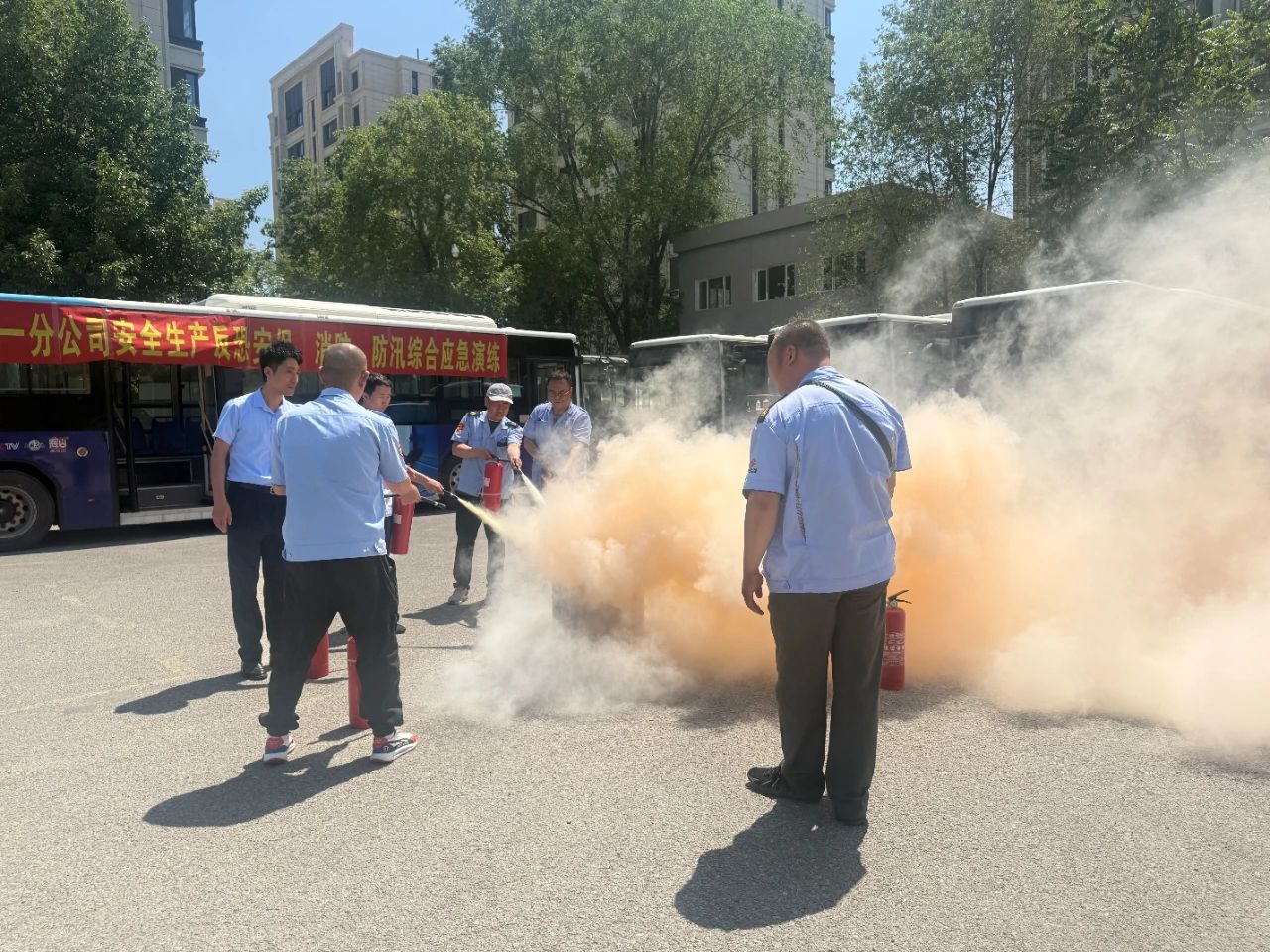為提升職工消防反恐安保意識(shí)和應(yīng)急處置能力,一分公司于6月6日組織開(kāi)展了安全生產(chǎn)、反恐安保、消防及防汛綜合應(yīng)急演練。市公交軌道分局王兆民處長(zhǎng)、公司負(fù)責(zé)人、相關(guān)部門(mén)負(fù)責(zé)人及駕駛員代表參加。