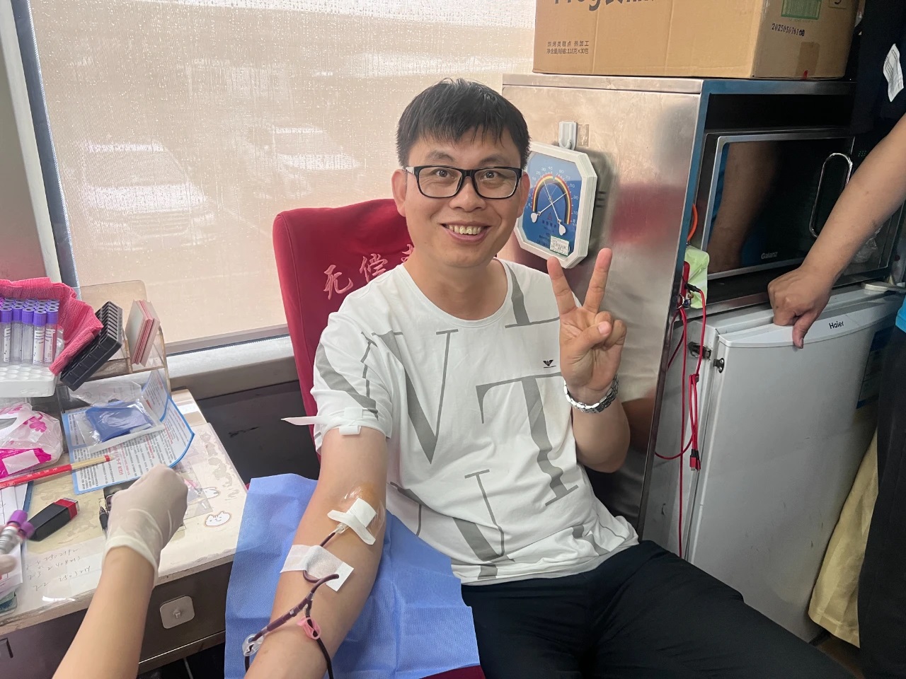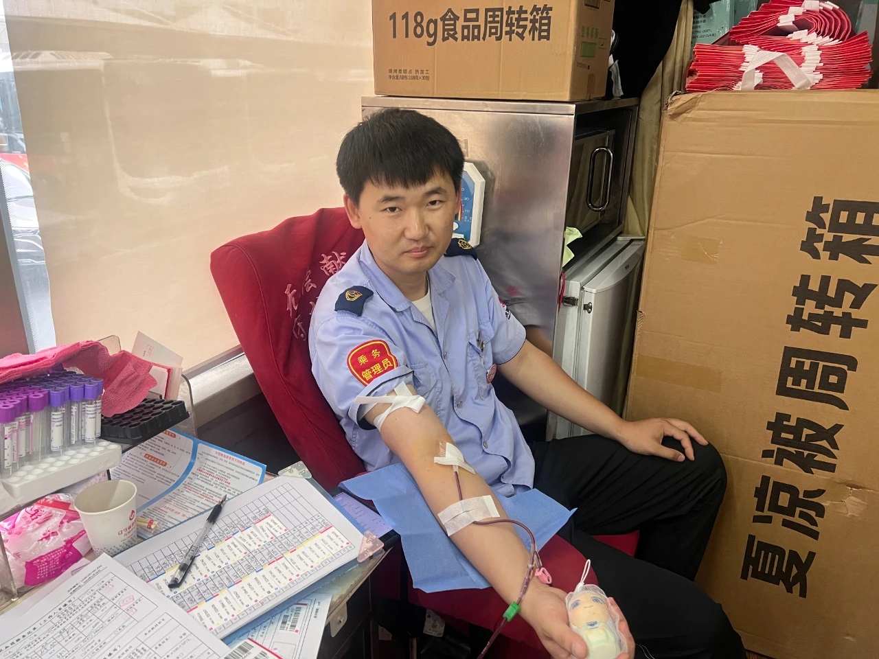 活動(dòng)現(xiàn)場(chǎng)溫馨有序。工作人員早早到位,引導(dǎo)志愿者們依次完成信息登記、健康檢查、血液初篩等環(huán)節(jié)。采血車(chē)直接駛?cè)敫鞔髨?chǎng)區(qū),方便職工參與。志愿者們紛紛挽起袖子,勇敢地伸出臂膀。隨著采血針的輕輕刺入,一袋袋承載著深情厚誼的熱血緩緩流入儲(chǔ)血袋中。