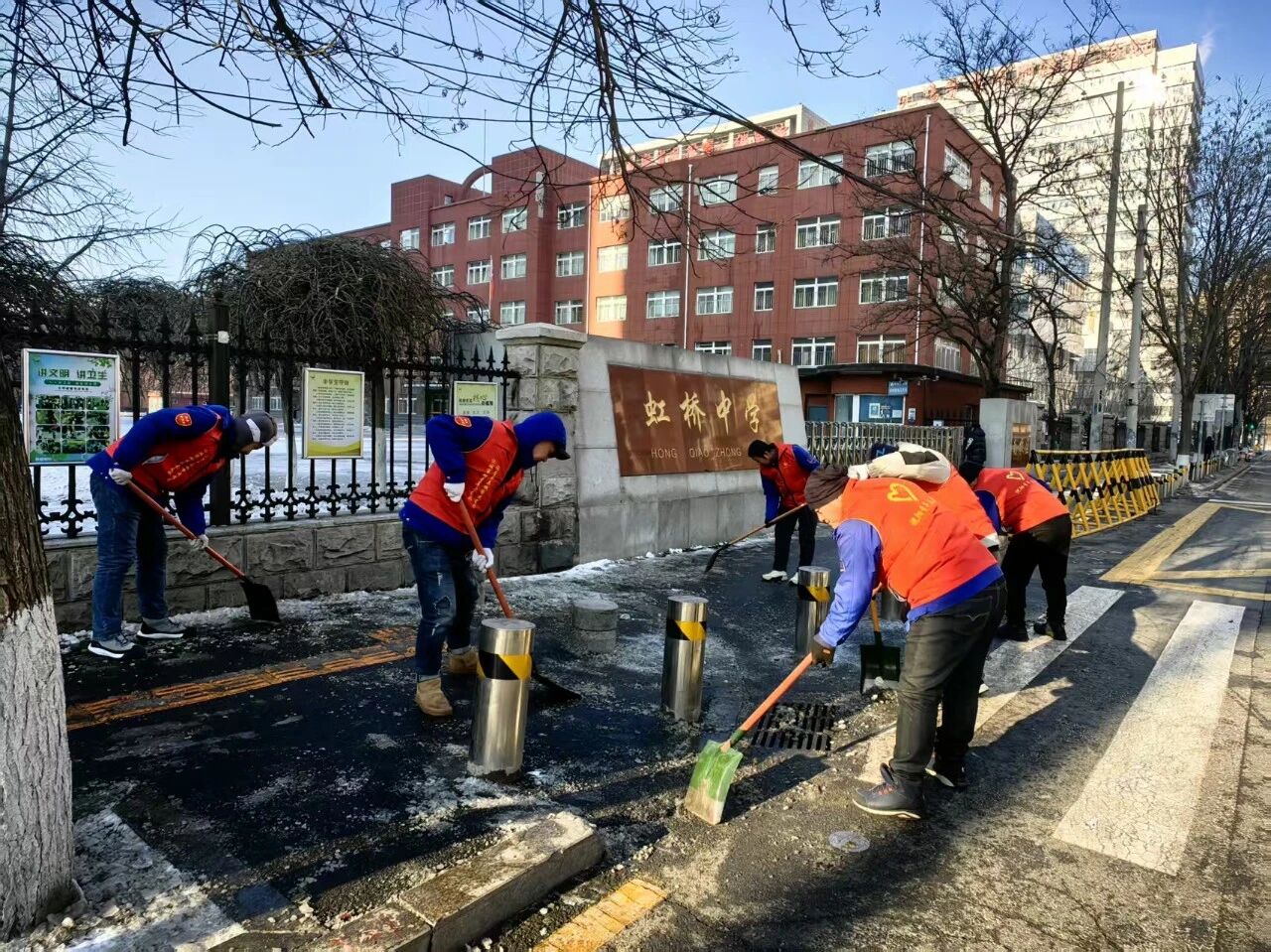 活動(dòng)當(dāng)天,黨員志愿者們身著紅色馬甲,準(zhǔn)時(shí)集結(jié),參與淮北社區(qū)組織的清冰除雪志愿服務(wù)活動(dòng)。針對(duì)虹橋中學(xué)校門(mén)口人行橫道積雪結(jié)冰、易滑難行的問(wèn)題,志愿者們重點(diǎn)對(duì)該區(qū)域展開(kāi)集中清理。大家手持鐵鍬、雪鏟、掃帚等工具,分工協(xié)作、齊心協(xié)力,將路面積雪與薄冰徹底鏟除清運(yùn)。經(jīng)過(guò)一番努力,校門(mén)口人行橫道恢復(fù)干凈通暢,通行條件顯著改善,為師生的安全出行提供了堅(jiān)實(shí)保障。