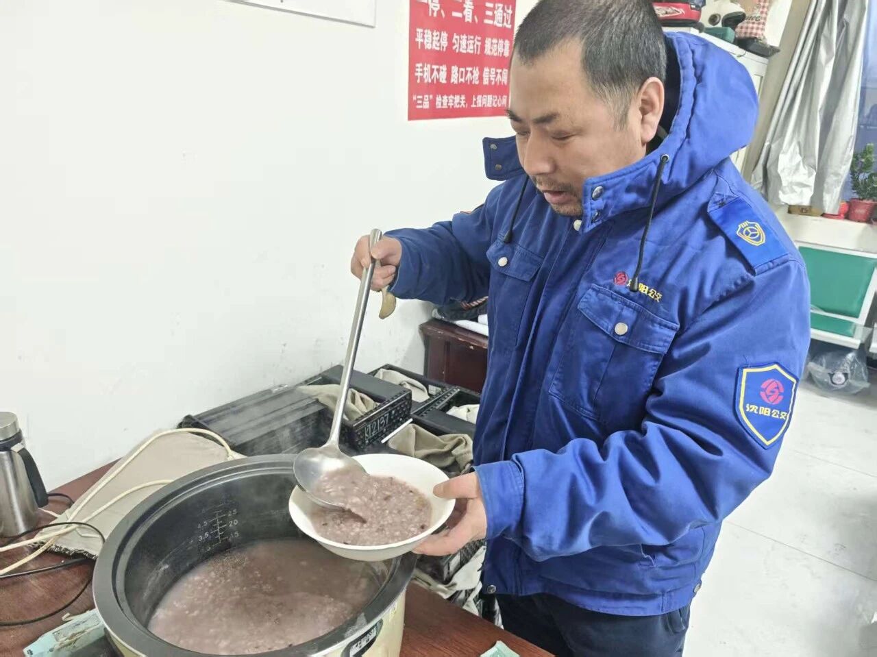 接過粥碗,熱氣順著手心蔓延,駕駛員們笑意融融。一碗粥下肚,不僅驅(qū)散了凌晨的冷意,更熨帖了身心。車隊(duì)管理人員也借此機(jī)會(huì),細(xì)細(xì)叮囑:冬日行車,注意保暖,穩(wěn)駕慢行,務(wù)必把安全放在首位,以飽滿的精神迎接每一位乘客。