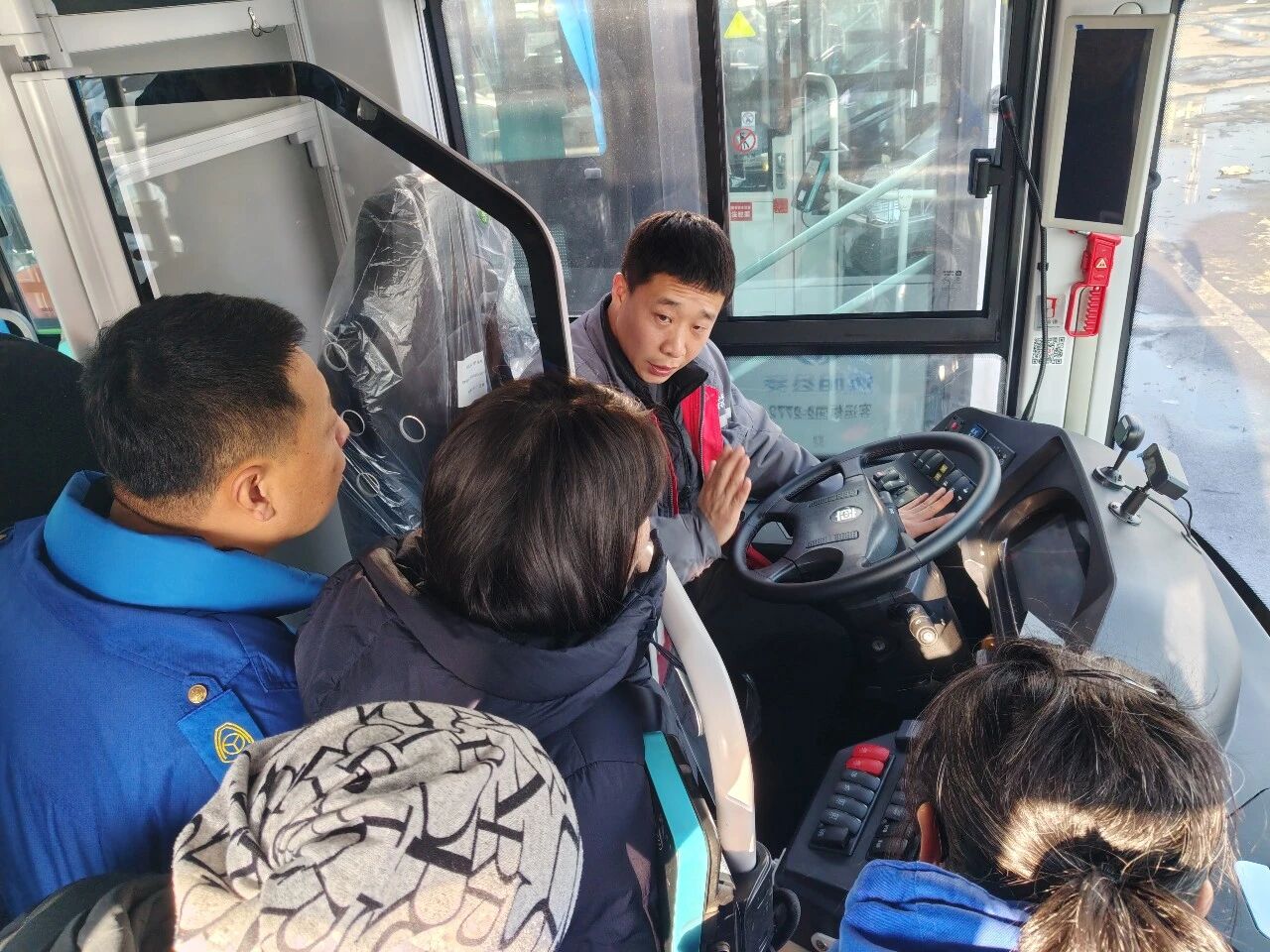 培訓(xùn)中,主講人系統(tǒng)介紹了新投運公交車輛的整體情況,并圍繞內(nèi)外設(shè)備、中控系統(tǒng)、動力與制動系統(tǒng)以及關(guān)鍵零部件等核心內(nèi)容,進行了實地講解,幫助參訓(xùn)人員建立對新車型技術(shù)結(jié)構(gòu)及運行特點的框架性認知。針對新車技術(shù)狀態(tài),培訓(xùn)明確了相應(yīng)的維護保養(yǎng)標準,詳細講解了運營前檢查要點、行車安全注意事項以及常見故障處理方法。