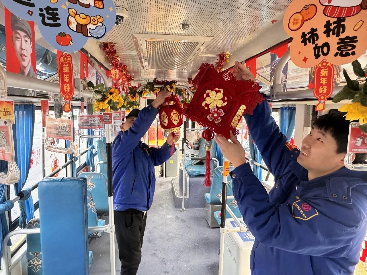 客運(yùn)集團(tuán)近期組織對(duì)所屬線路運(yùn)營(yíng)車(chē)輛進(jìn)行徹底清掃與精心裝飾。車(chē)窗上貼起福字窗花,車(chē)廂內(nèi)懸掛起紅彤彤的小燈籠,扶手欄上點(diǎn)綴著新春飾物,一輛輛公交車(chē)煥然一新。整潔明亮的車(chē)廂與喜慶祥和的裝飾交相輝映,使乘客一上車(chē)便能沉浸于歡樂(lè)的節(jié)日氛圍之中,開(kāi)啟一段充滿年味的行程。