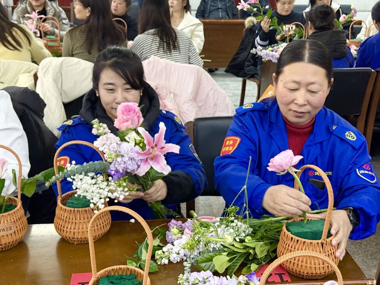 隨后,活動進入了令人期待的花藝創(chuàng)作環(huán)節(jié)。集團工會特別邀請了專業(yè)花藝講師進行現(xiàn)場教學。伴隨著輕柔的音樂,女職工們充分發(fā)揮想象力和創(chuàng)造力,她們或凝神構思,或精心修剪,或熱烈討論。玫瑰的嬌艷、康乃馨的溫馨、洋桔梗的雅致……原本普通的花枝在她們的巧手修剪與創(chuàng)意組合下,變成了一籃籃錯落有致、生機盎然的藝術品。每一件作品都蘊含著對美的理解和對生活的熱愛,現(xiàn)場花香與笑聲交織,氣氛溫馨而熱烈。