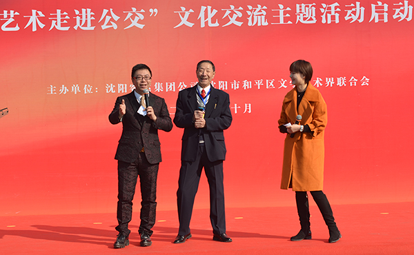 此次文化交流主題活動請到沈陽市和平區(qū)文聯(lián)的作家、書法、攝影、美術(shù)、民間文藝、音樂、曲藝、收藏、國學(xué)文化等9個協(xié)會的42名藝術(shù)家參加。文藝演出由遼寧廣播電視臺《說天下》主持人楊悅及《話說名家》、《健康一身輕》主持人李陽共同主持。演出精彩紛呈,大鼓獨奏《鼓動神州》隆隆聲響雄壯有力,女生小合唱《燕子》歌聲嘹亮動聽,笛子獨奏《揚鞭催馬運糧忙》清亮悠遠不絕如縷,來自鼎泰樂和藝術(shù)團青年相聲演員張?zhí)靵?、常云瞰為現(xiàn)場觀眾帶來了對口快板《天安門廣場看升旗》唱詞合轍押韻,著名相聲表演藝術(shù)家、中國曲藝牡丹獎終身成就獎獲得者、和平區(qū)曲藝家協(xié)會名譽主席楊振華先生表演了原創(chuàng)相聲《公交趣聞》將整場演出推向高潮。演出在全體演職人員以“藝術(shù)公交 客運集團 祝福沈陽 祝福明天”為口號聲中劃上了圓滿句號。