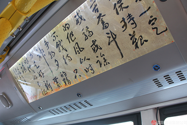 昨日,集團(tuán)公司領(lǐng)導(dǎo)班子一同前往全運(yùn)五路公交樞紐站,檢查全國首條“藝術(shù)公交”130路車身設(shè)計,該線路將成為我國首條“行走的藝術(shù)走廊”。 為給市民,乘客提供美觀、舒適、藝術(shù)氣息濃厚的乘車環(huán)境,集團(tuán)公司與和平區(qū)文聯(lián)共同設(shè)計車身裝飾。首臺“藝術(shù)公交”車身外采用我市書法大家的書法作品,充分體現(xiàn)了城市獨(dú)有的文化底蘊(yùn)。車廂內(nèi)看板展示了名家書法真跡,仿若置于翰林書院。書法作品以切實(shí)增強(qiáng)意識形態(tài)為目的,以宣傳貫徹十九大精神為主題。此外,車廂前端一側(cè)設(shè)有液晶顯示屏,播放各種藝術(shù)形式的短片。使得公交車融入了文化的內(nèi)涵,搖身一變成為了城市“流動的藝術(shù)展廳?!?/p>