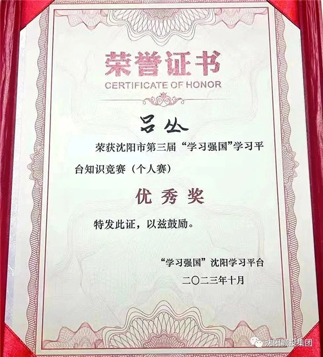 在剛剛結(jié)束的沈陽市第三屆“學(xué)習(xí)強(qiáng)國”學(xué)習(xí)平臺(tái)知識(shí)競賽(個(gè)人賽)中,代表市國資系統(tǒng)參賽的沈陽客運(yùn)集團(tuán)呂叢同志,獲得個(gè)人賽優(yōu)...