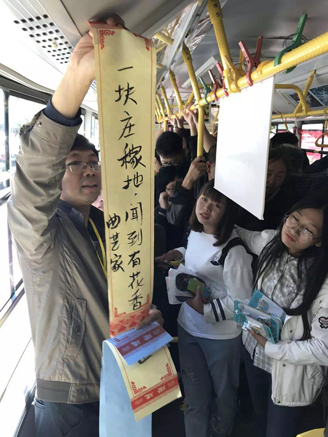 為了讓“藝公交”活動(dòng)深入持久地開(kāi)展下去,在中秋節(jié)放假第一天,和平區(qū)文聯(lián)、沈陽(yáng)客運(yùn)集團(tuán)與沈陽(yáng)藝海星辰有限公司聯(lián)合組織區(qū)民間文藝家協(xié)會(huì)、曲藝家協(xié)會(huì)的藝術(shù)家在藝公交上開(kāi)展了有獎(jiǎng)猜謎、快板表演、京歌演唱等活動(dòng),營(yíng)造和諧愉悅的節(jié)日氛圍。