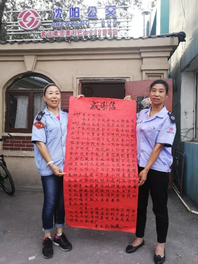 9月11日上午,乘客楊淑媛的女兒把感謝信親自送到康利公司239路車隊(duì)站務(wù)室,感謝駕駛員劉立寧、董愛武對自己母親的暖心幫助。