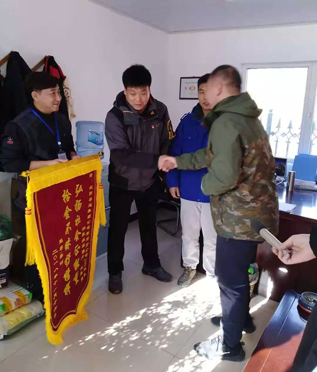 為表達自己的感激之情,第二天,姜先生聯系了新北方的記者一同來到車隊,并將趕制的一面錦旗送到了沈雁超手里。贊揚他:拾金不昧好搒樣,弘揚社會正能量。金燦燦的錦旗映襯著大家的笑臉,顯得格外溫暖。當記者對司機沈雁超進行采訪時,他只是憨厚的說:“這都是我應該做的,同時也借這個機會提醒大家,冬季出行著裝厚重,乘坐公交車一定要看管好自己隨身攜帶的物品”。