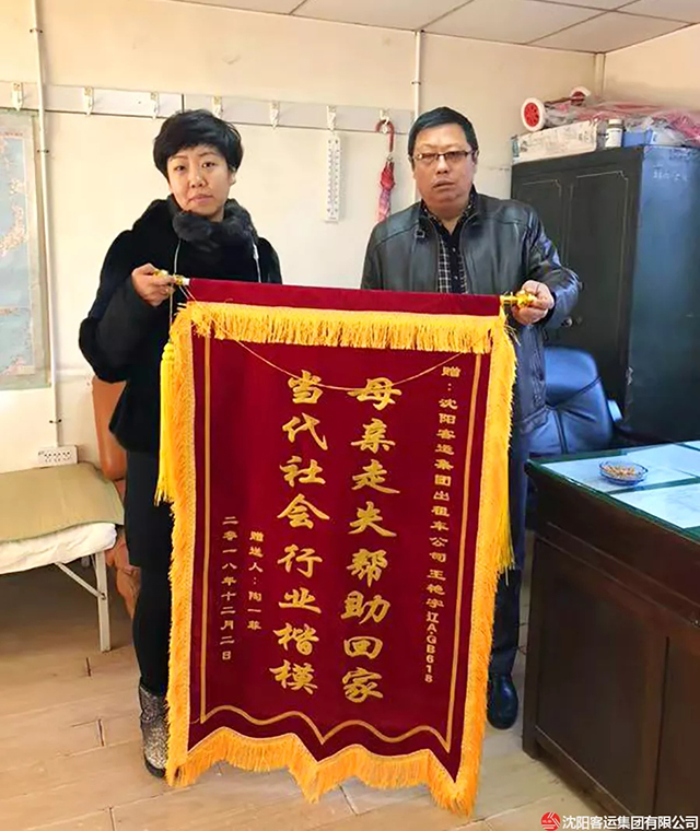12月6日,走失老人家屬將一面寫有“母親走失幫助回家 當代社會行業(yè)楷模”的錦旗送到公司,公司才了解王艷宇所做的善舉。